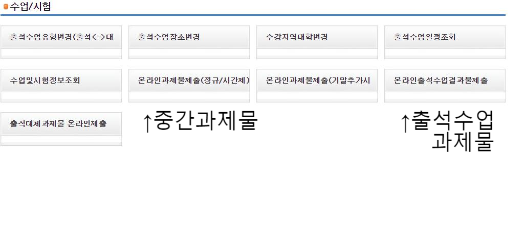 온라인과제물제출(중간과제물 ) , 온라인출석수업결과물 제출(출석수업시 과제가생겼을경우 이곳에 올라옴)