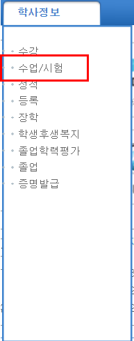 3. 학사정보메뉴 -> 수업/ 시험