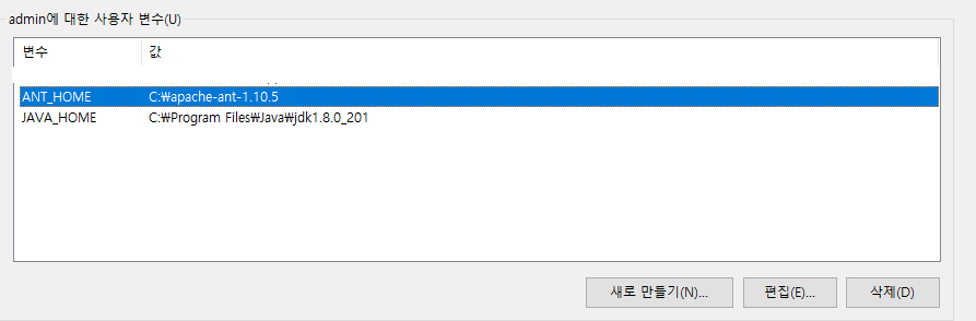 (1) Apache Ant , Java Path 환경변수를 잡아준다. 위에와같이 패스를 잡아준다.