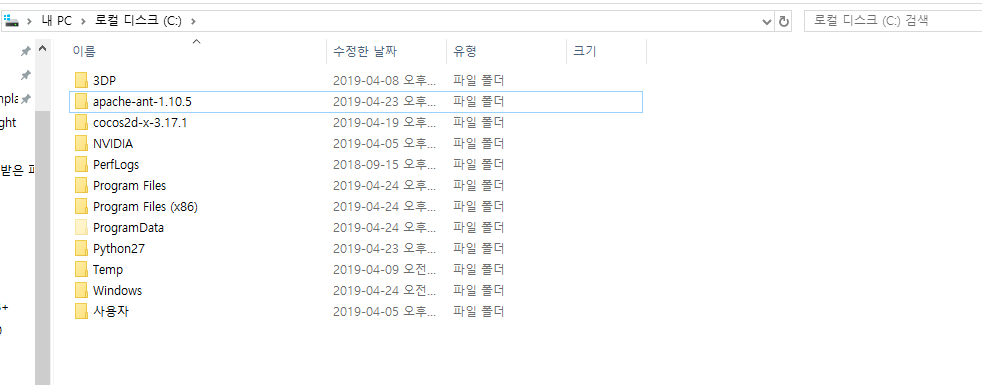 시스템 환경변수 설정 편의를 위해 C:\ 에 위치시킨다.