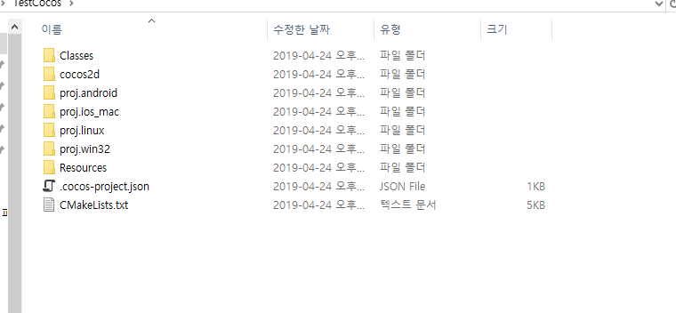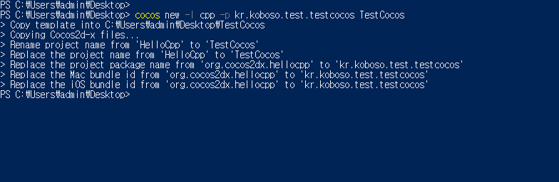 코코스 프로젝트 생성.