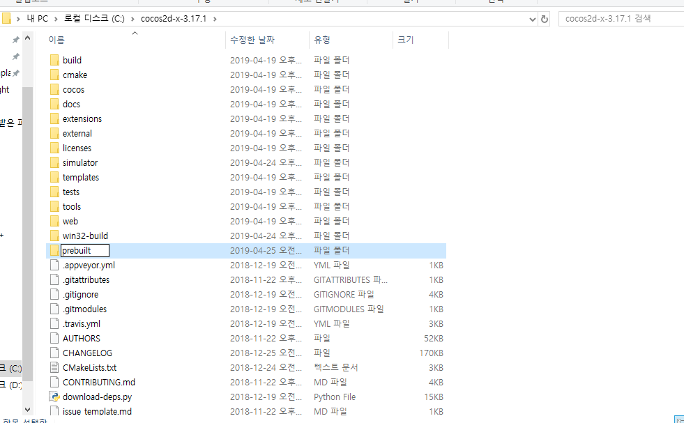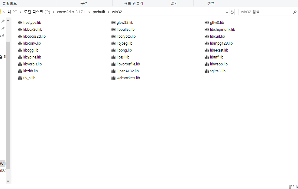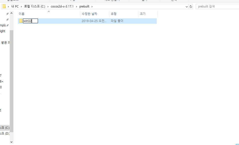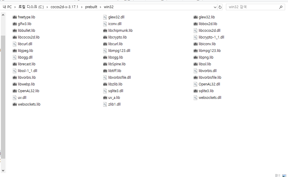 prebuilt 안에 win32 폴더를 만들어 이동한다.