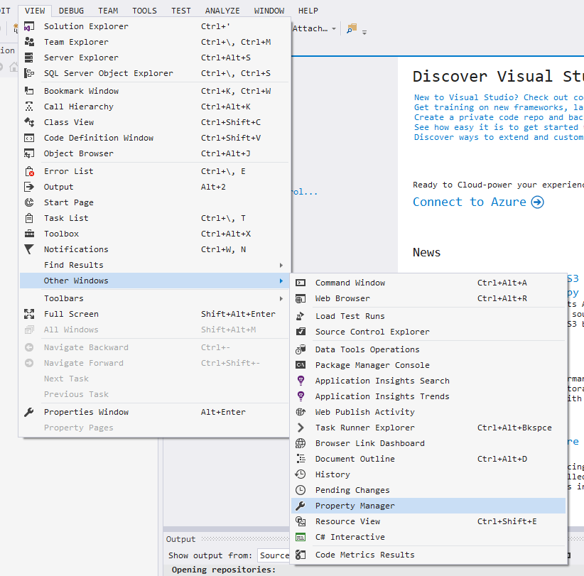 View -> Other Windows -> property Manager