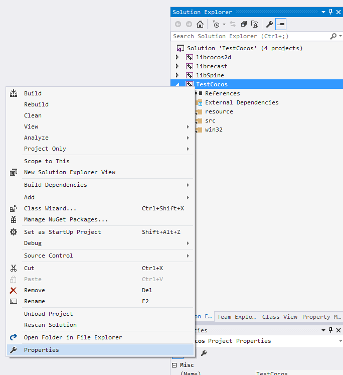 Visual studio property setting.