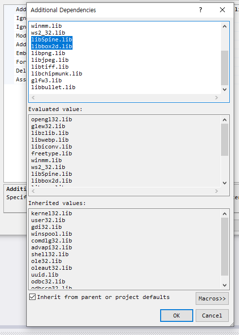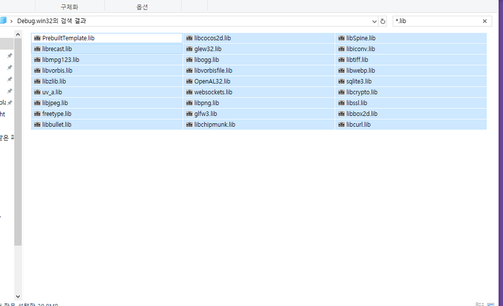 libSpine.lib , libbox2d.lib 2개를 지워준다.
