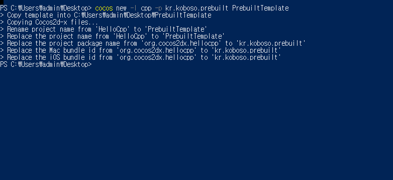 prebuilt 로 사용할 코코스프로젝트를 하나 만든다.