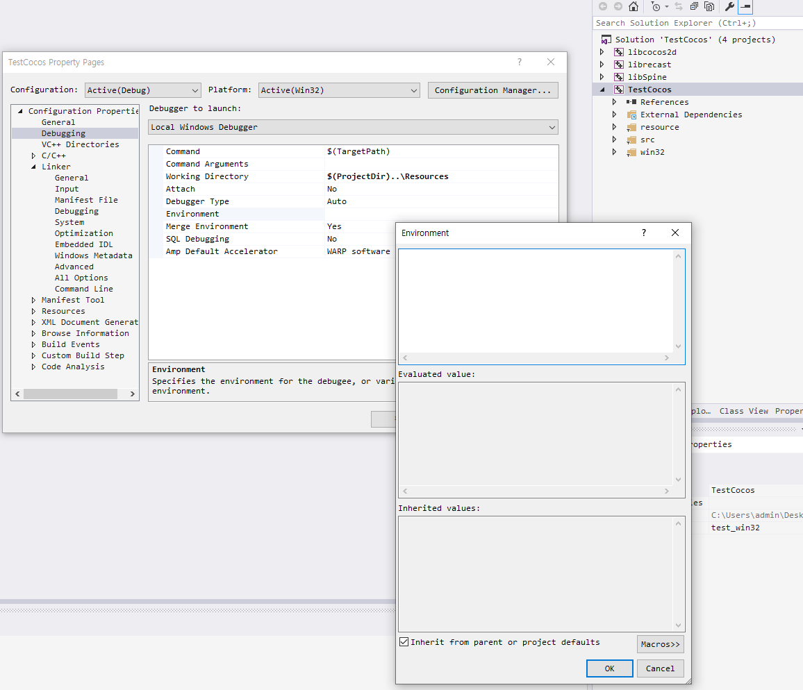 - Configuration Properties -> Debugging -> Environment