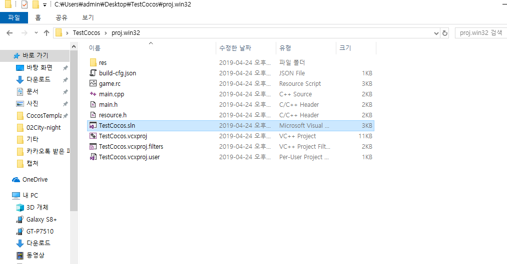 win32 폴더 경로로 들어가 sln 파일을 실행해준다.