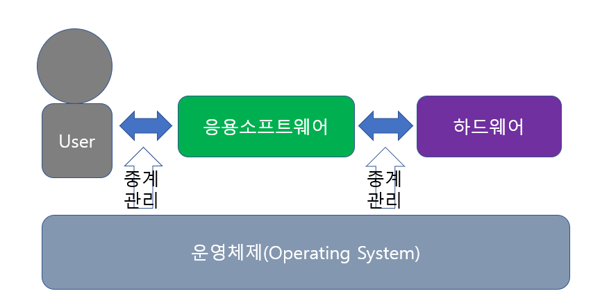 컴퓨터시스템은 하드웨어, OS , 응용소프트웨어와 같이 세부분으로 분류된다. OS는 하드웨어와 응용소프트웨어 사이에서 중계자 역할을 하면서 사용자가 효율적으로 컴퓨터를 사용할수 있도록 한다.