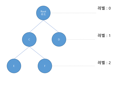 • 레벨 루트 노드로부터의 거리(가지의 개수)를 의미