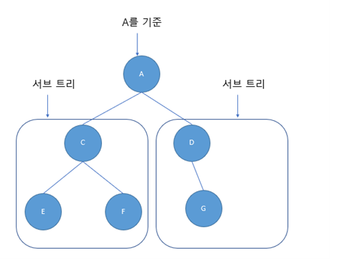 ※ 각 서브 트리는 왼쪽 서브트리와 오른쪽 서브트리로 구분