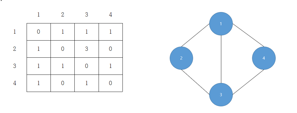 ※ 그래프에서 정점과 정점이 연결되었을 경우 1로 표현하고 연결되지 않았을 경우 0으로 표시한다.