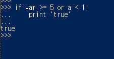 if 조건문 중 1개라도 조건이 참이 되게 하기 위해선 or 키워드를 사용해야 한다.