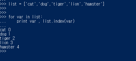 var 라는 변수에 list의 원소 값을 넣어줍니다. 그리고 list의 모든 인덱스가 끝날 때 종료합니다.