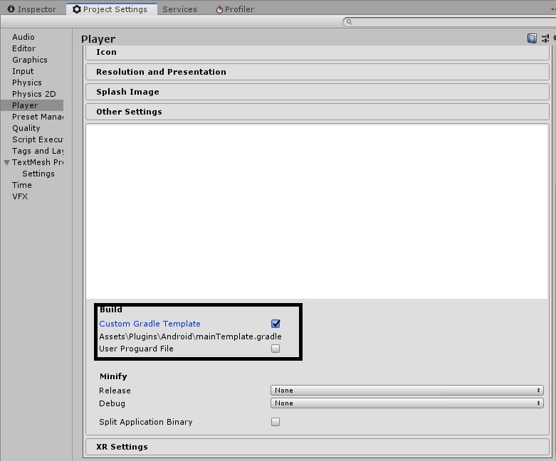 1. File -> Build Settings -> Player Settings ->Build Section -> Check Custom Gradle Template