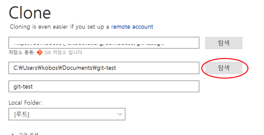 이대로 클론하지않고, 저장되는 위치를 바꾸어줘야한다.