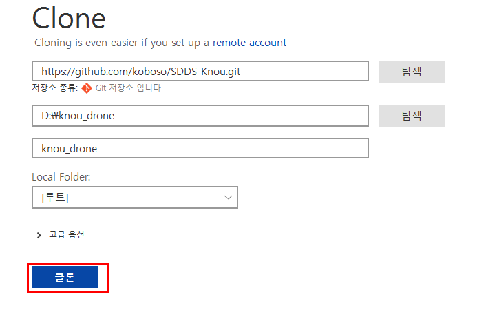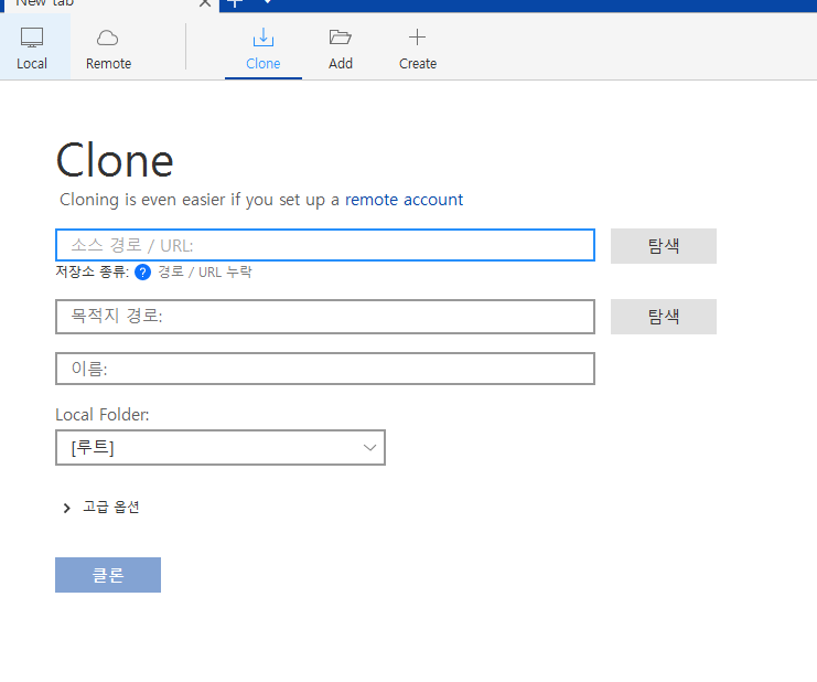 처음 버튼을 누르면 클론(복사) 할수 있는 URL이 나오게 된다.