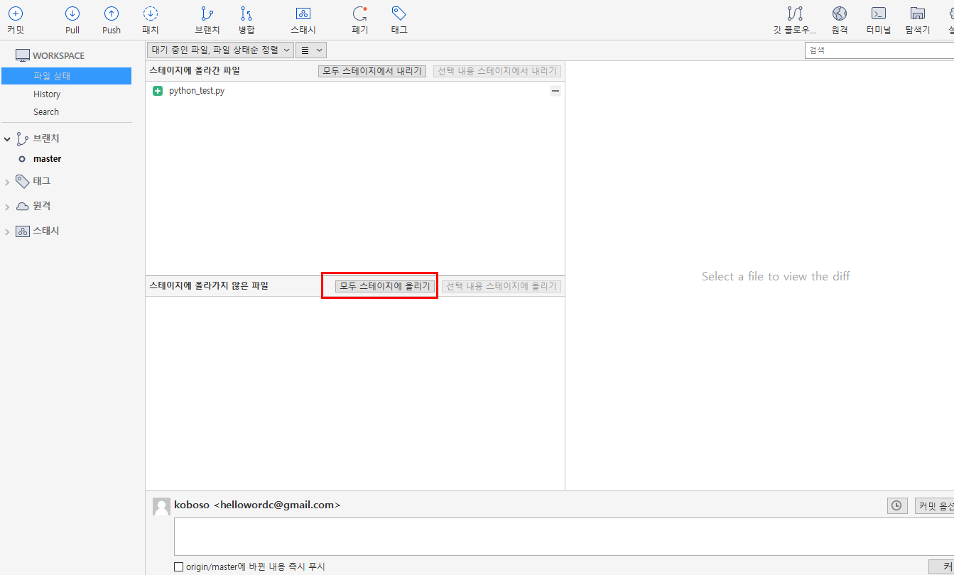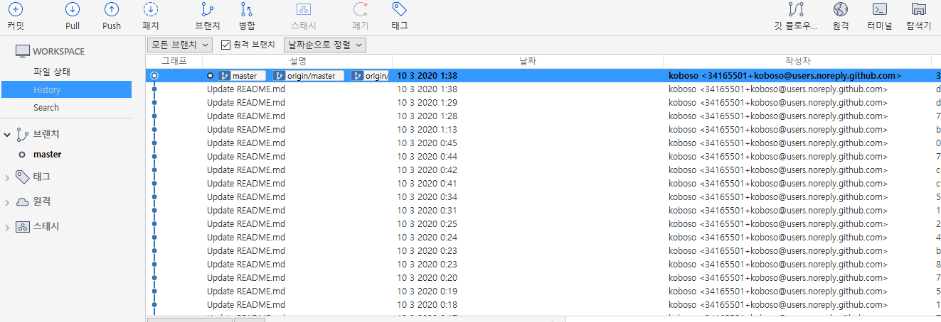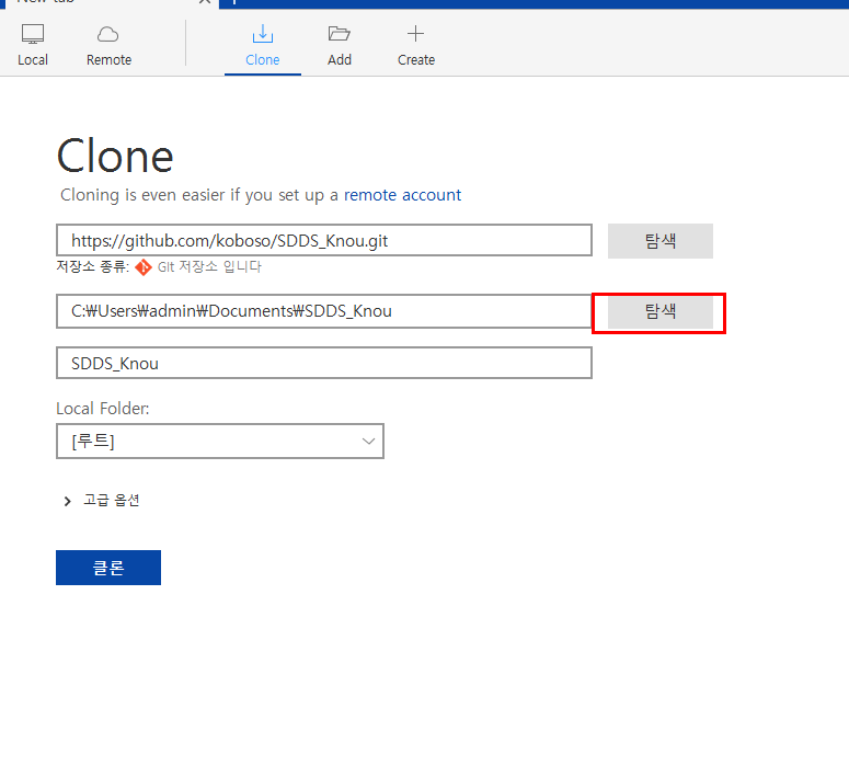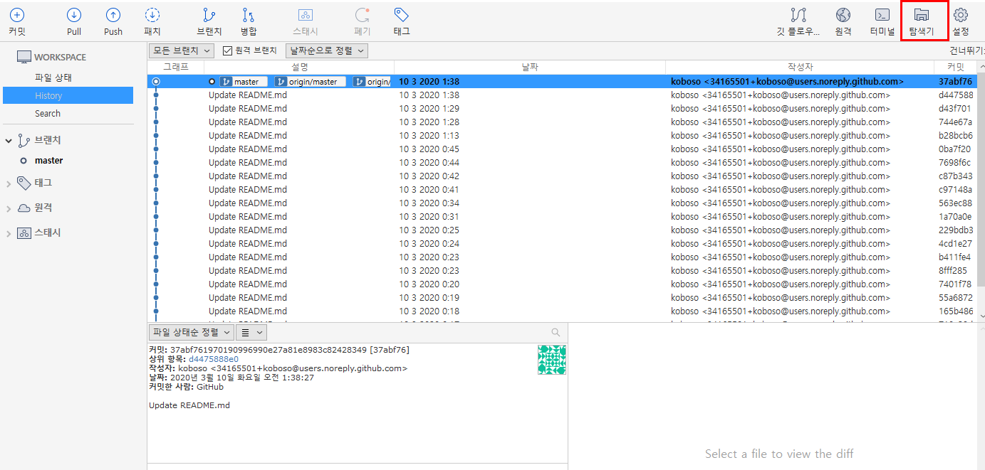 탐색기 버튼을 누르면 현재 저장소가 있는 위치를 알수있다.
