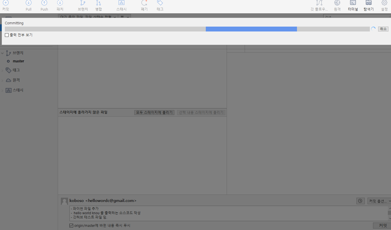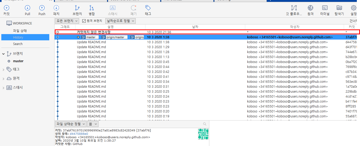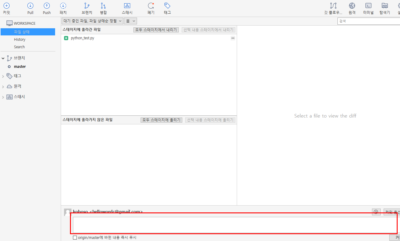 이곳은 변경된 사항, 추가된사항 , 등 설명을 적는 부분이다. 대충 쓰고 커밋 하지 말도록 하자.