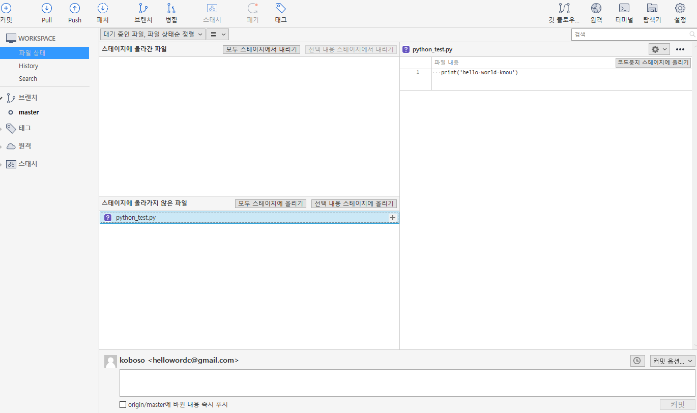 현재 저장소에 파이썬 파일을 하나 만들어서 테스트 하려고한다.