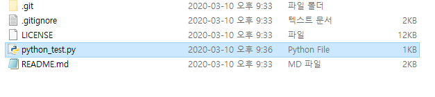 현재 저장소에 파이썬 파일을 하나 만들어서 테스트 하려고한다.