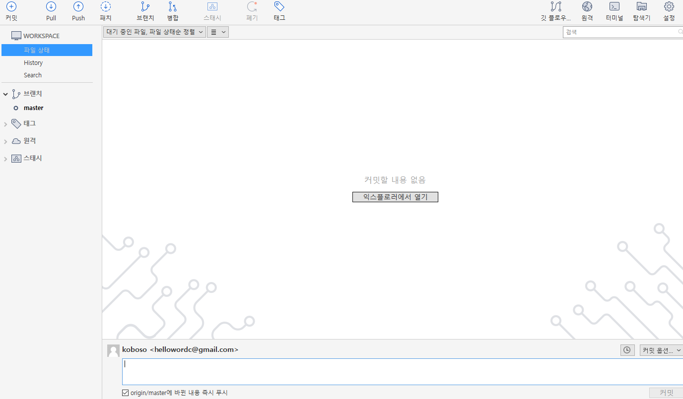 탐색기 버튼을 누르면 현재 저장소가 있는 위치를 알수있다.