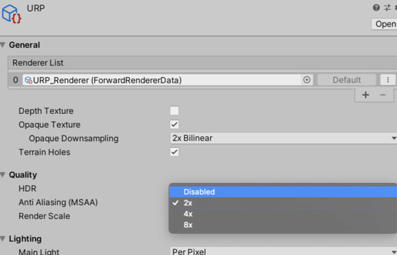 Anti Aliasing(MSAA) 꺼줘야한다. [Disabled]