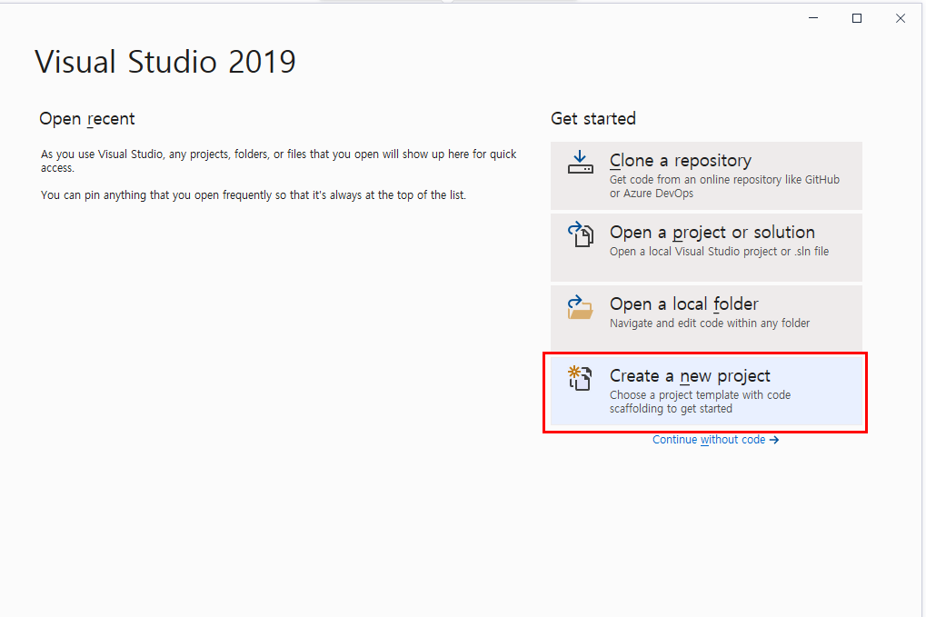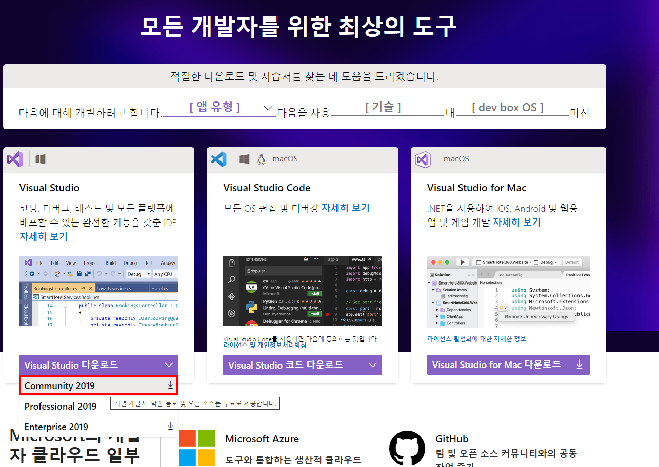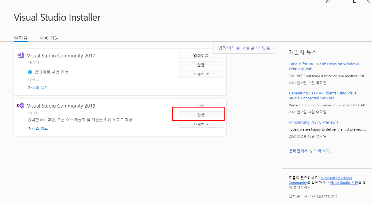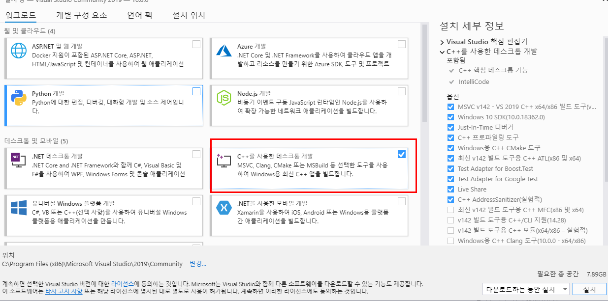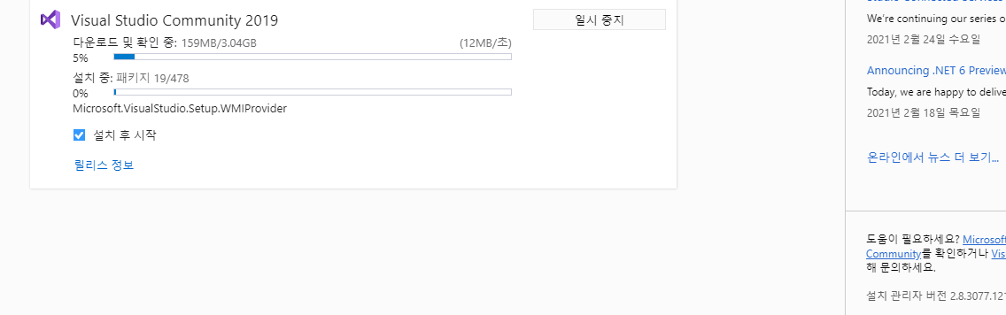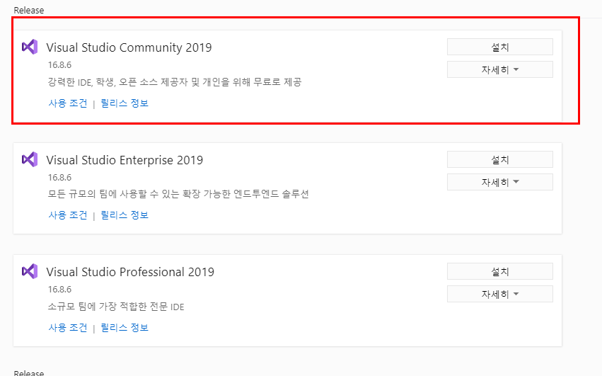 Visual Studio 2019 Community 를 설치합니다.