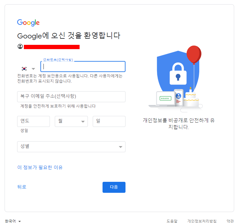 입력후 개인정보를 추가적으로 입력합니다.