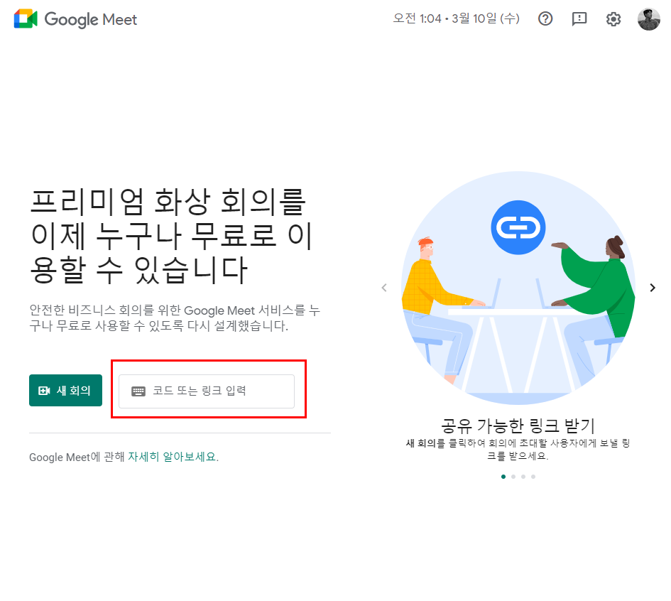 구글 Meet URL 은 다음과 같습니다.