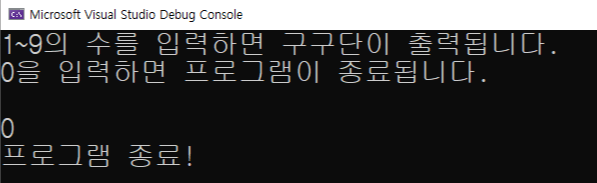 그에맞는 구구단을 출력하고, 다시 프로그램을 시작( 사용자 입력을 기다린다.)