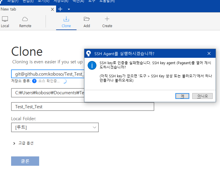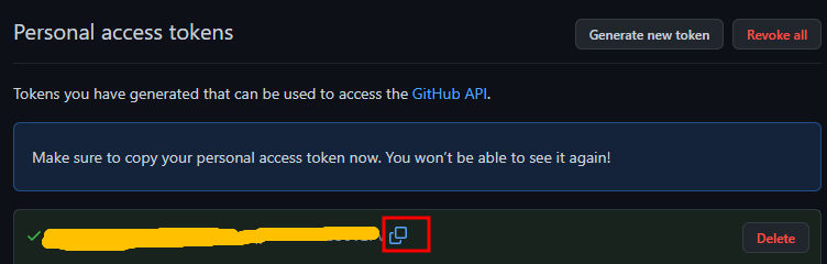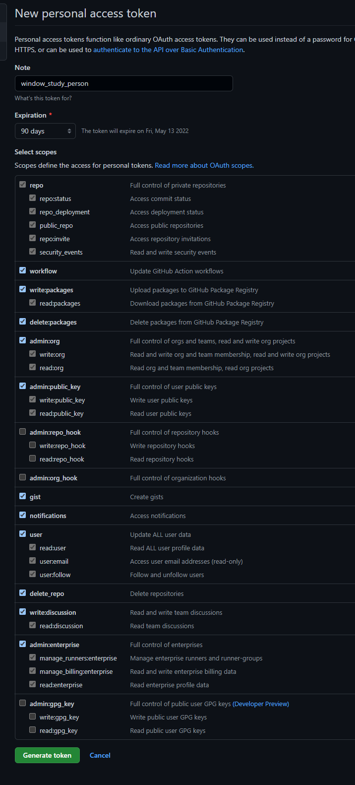 아까 personal Token Access에서 복사해놓으라는 그 코드를 붙여 넣기 하면 된다.