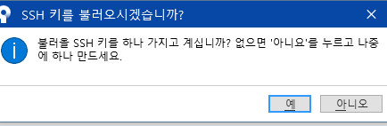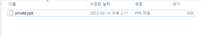 불러오기해서 아까 저장해놓은 *.ppk 파일을 선택해주면 된다.