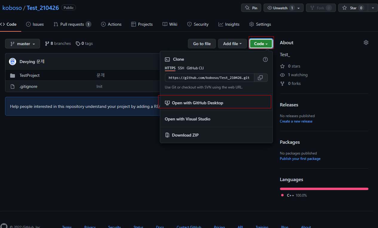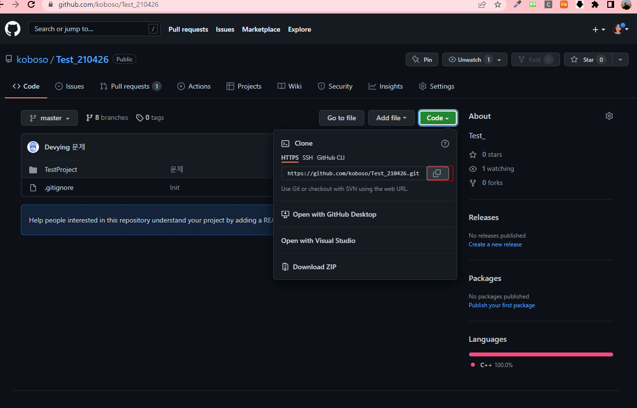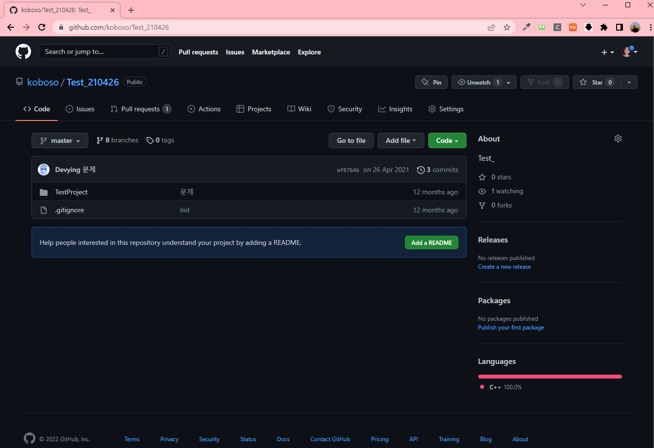 그러면 정상 푸쉬까지 한걸 확인할수 있다.
