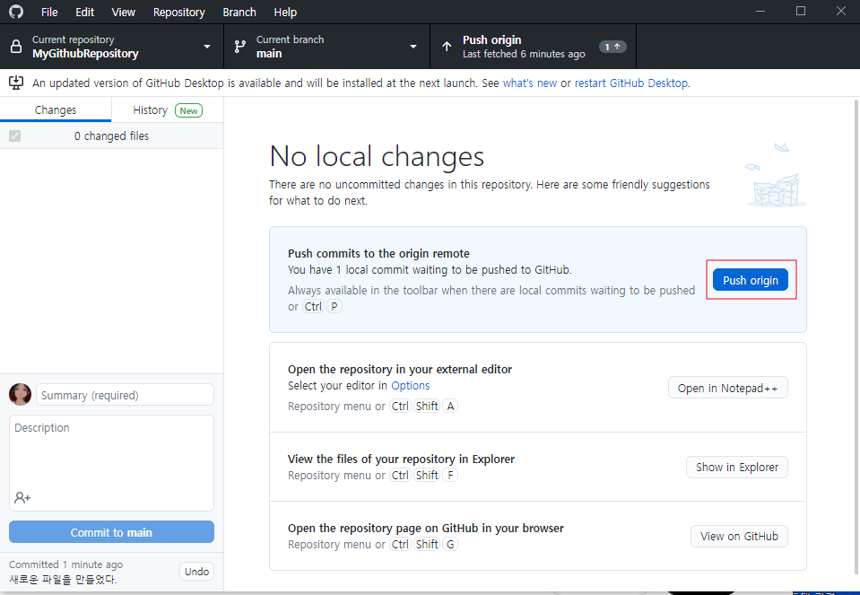 커밋이 되면 또 다음과 같은 화면이 나오는데.