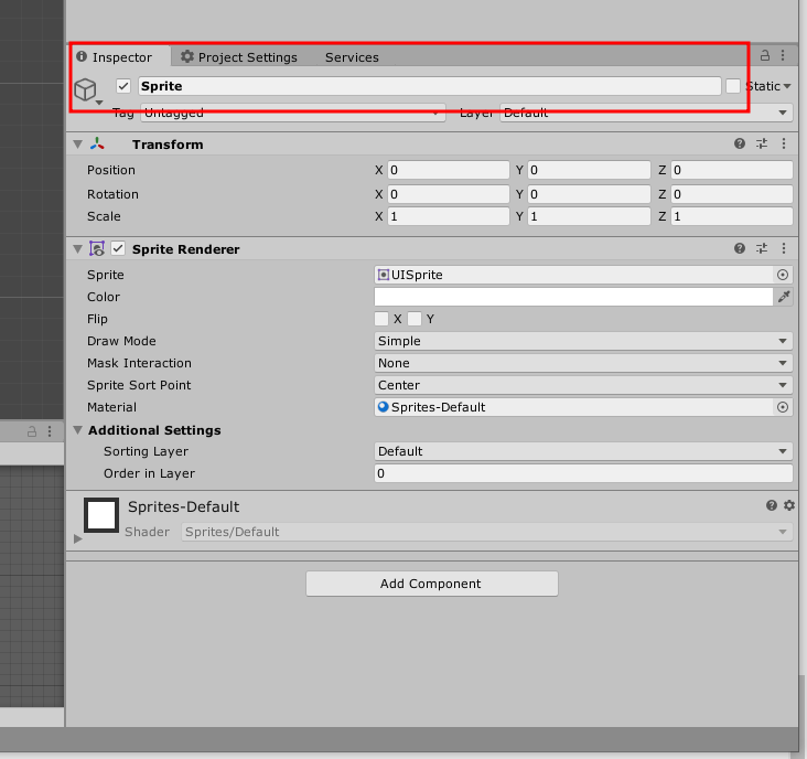 F2키를 누르거나 우측 인스펙터 창에서 이름을 변경해준다.