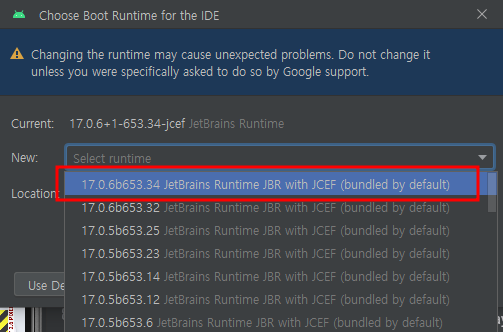 2. Choo 검색 하면 , Choose Boot Java Runtime for the IDE..