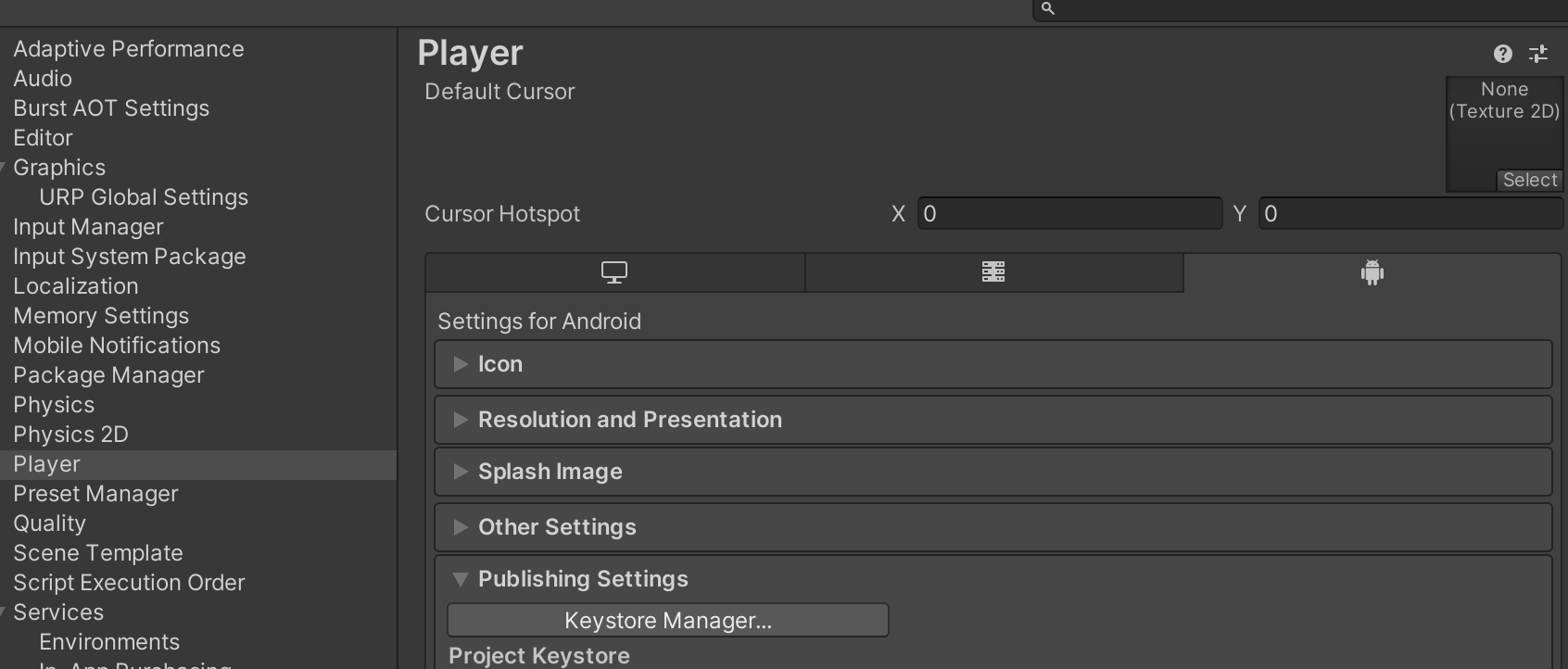 Build Setting -> player -> Publishing Settings로 이동.
